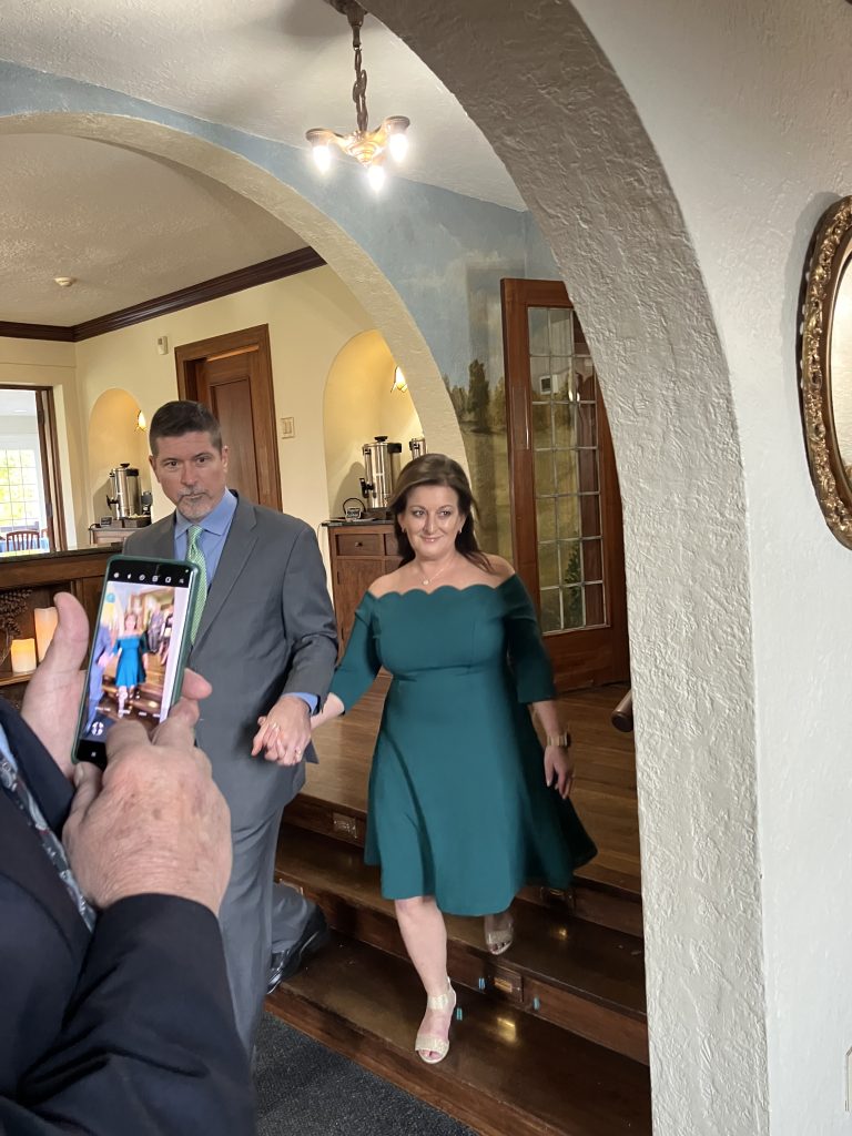 We had a cocktail reception – meaning no sit-down dinner – heavy apps and a grazing table.  This was 100% up my alley.  I wanted people mingling and dancing and eating and drinking.  I think that all happened. The food was outstanding.   The cakes were also great –  and I did say cakes (I like variety).  We got the cakes from a supermarket – we had 5 different flavors, and I had a bite of each – – it was PERFECT. Plus, I used my mums cake stands to display the cakes, which I really loved.