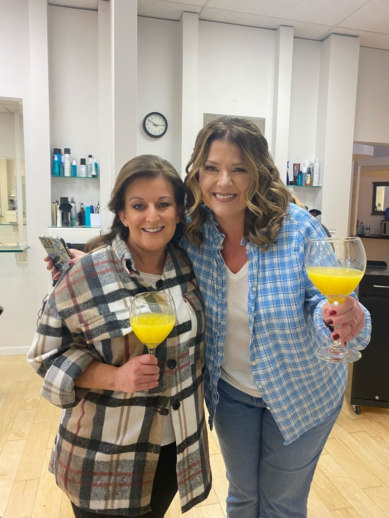 8am – up early for hair and makeup.  We had a great morning at the beauty shop – drinks, food, laughs – – it was fun.
